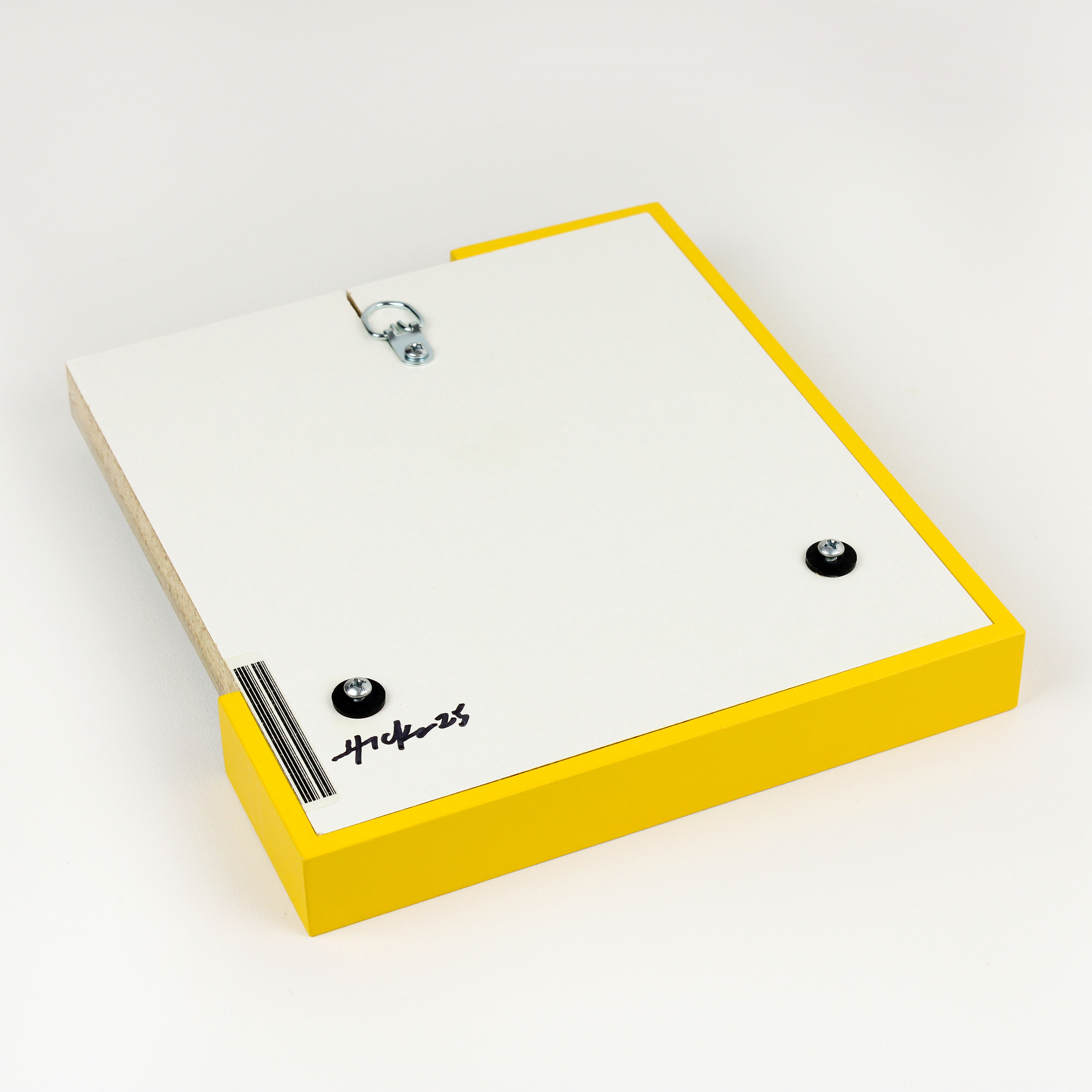 Spray paint, basswood, thermal label, wood screws, unfinished maple, repurposed plastic display panel